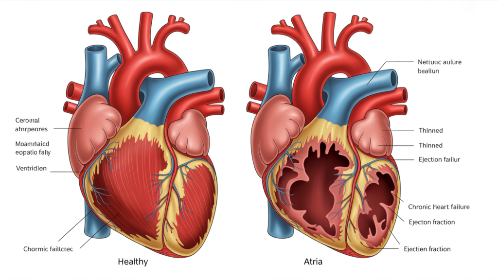 Over time, poor heart pumping ability leads to fluid buildup and exhaustion. Unlike a heart attack, heart failure develops gradually. However, flare-ups can happen suddenly. This makes it a chronic condition requiring long-term management, not a one-time event.